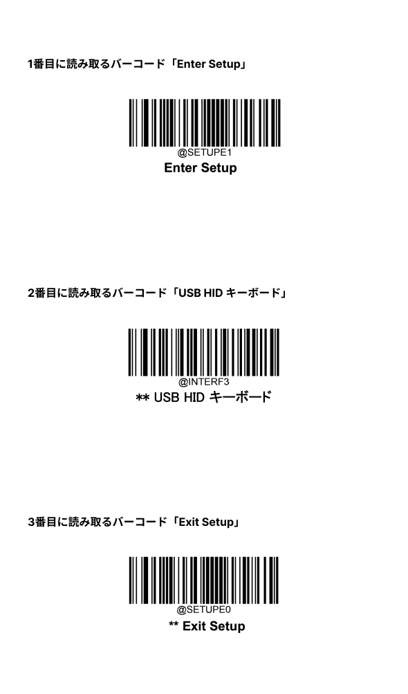 各バーコードを読み取ると、卓上QRコードリーダーから音が鳴ります。すべてのバーコードを読み取りできたら、HIDキーボード設定は完了です。